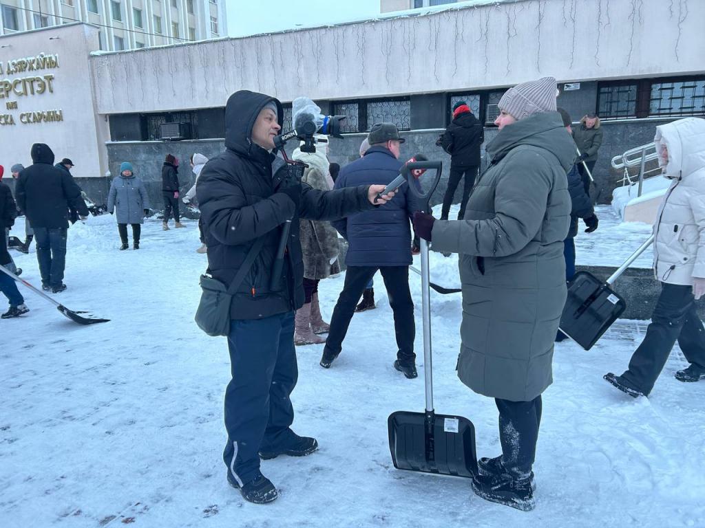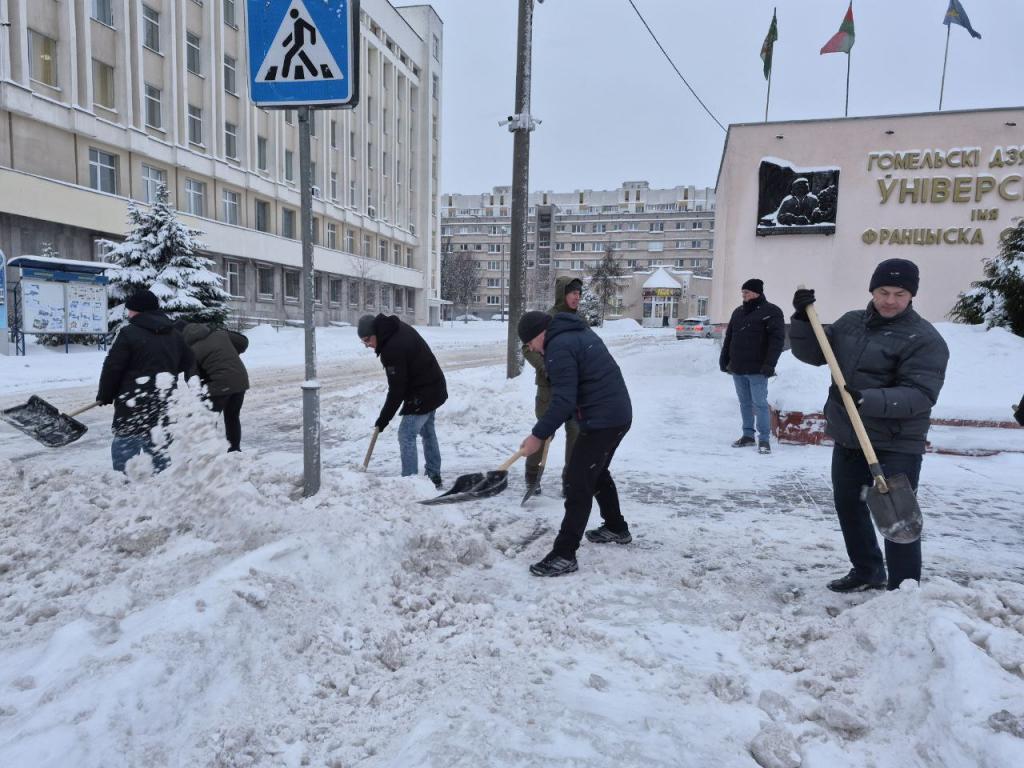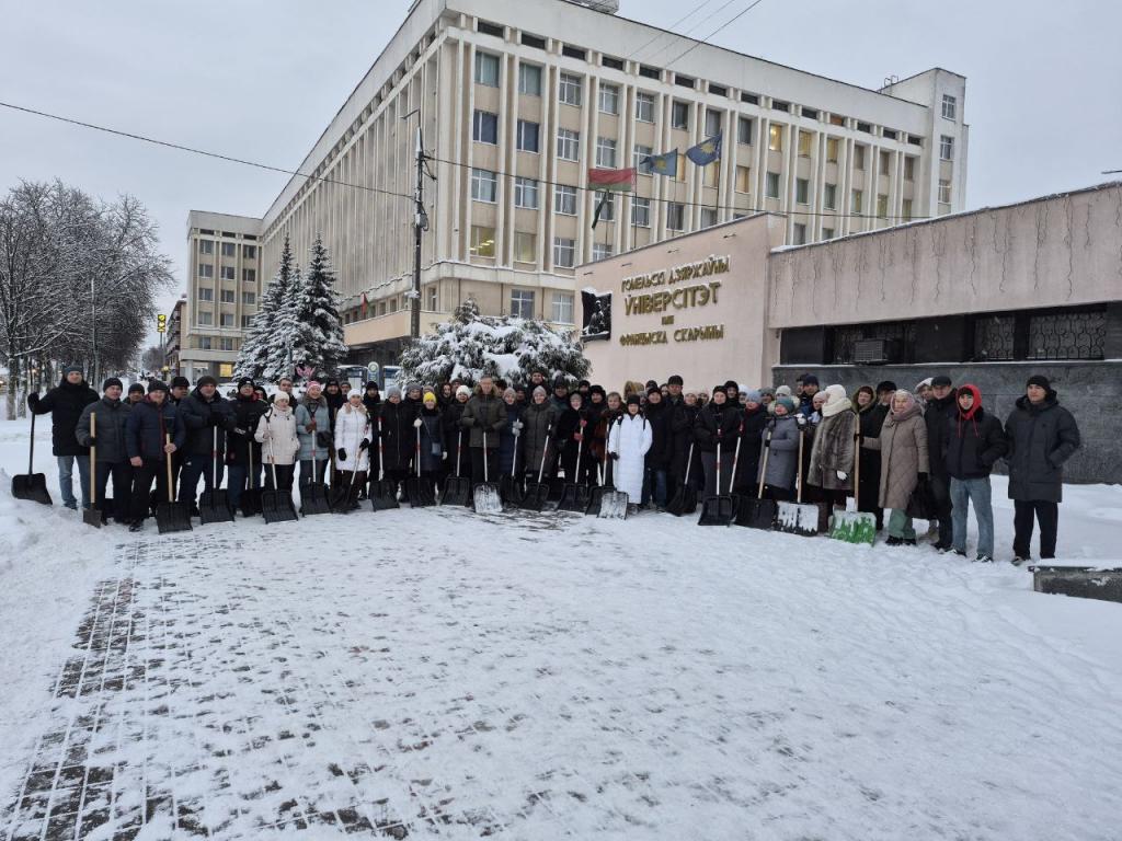 Более 100 сотрудников, преподавателей и студентов Гомельского государственного университета имени Ф.Скорины  во главе с ректором Сергеем Хахомовым приняли участие в городском субботнике. Благодаря слаженной работе и отличному настроению удалось выполнить большой объем работ.
