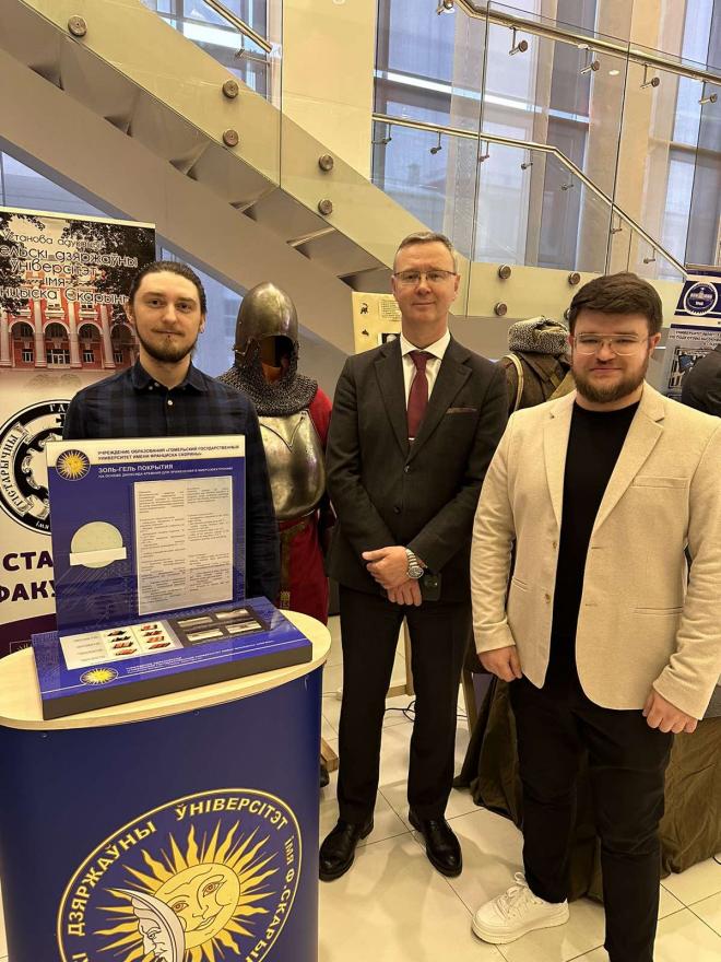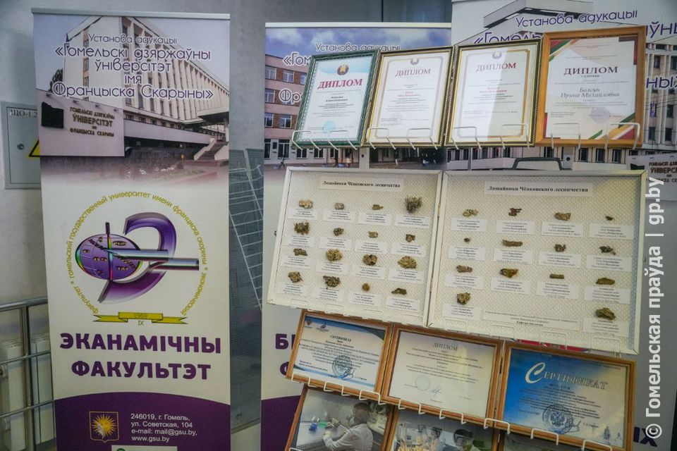 В рамках мероприятия в холле ОКЦ Гомельский государственный университет имени Ф. Скорины представил выставку научных достижений вуза. Экспозиция вызвала интерес у специалистов науки и производства.