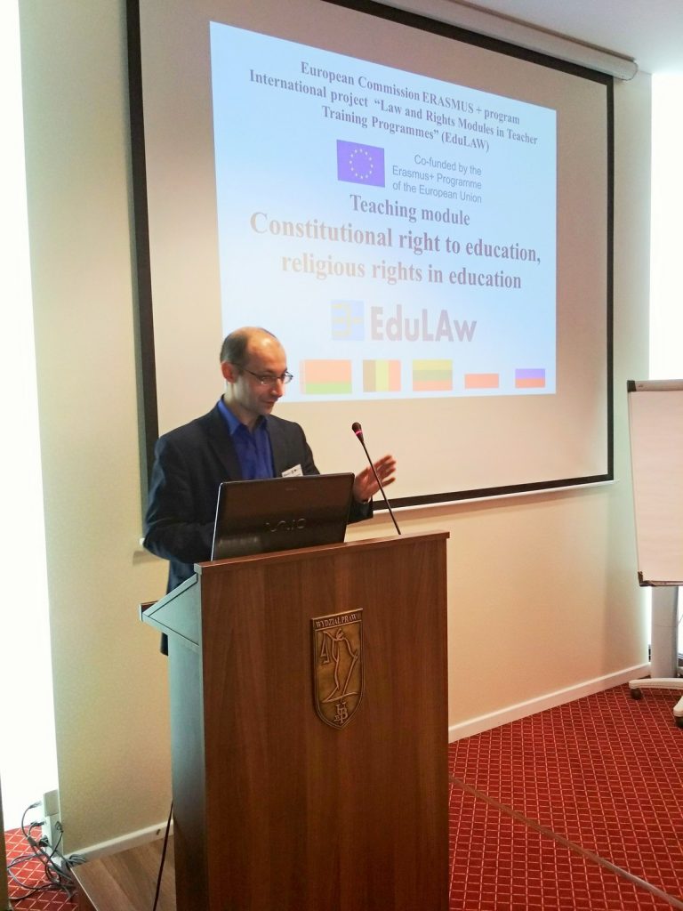 Сотрудники ГГУ имени Ф. Скорины представили коллегам результаты проведённого исследования на тему «Конституционное право на образование. Религиозные права и свободы в образовании», выступили с экспертными заключениями по учебным модулям, подготовленным коллегами из университетов-партнёров: Свободного университета Брюсселя (Бельгия), Белостокского университета (Польша), Университета Витовта Великого (Литва), Тиранского университета (Албания), Московского городского педагогического университета,  Московского государственного  юридического университета имени О.Е. Кутафина, Марийского государственного университета, Северного арктического федерального университета (Российская Федерация) и Белорусского государственного педагогического университета.
