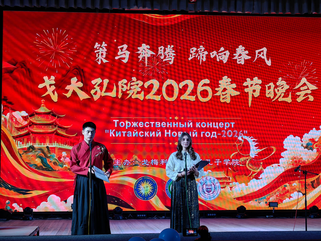 13 февраля 2026 года в актовом зале Гомельского государственного университета имени Франциска Скорины состоялось торжественное мероприятие «Встреча Нового года Огненной Лошади 2026». Праздничный концерт был организован Институтом Конфуция при ГГУ и объединил студентов, преподавателей, школьников и гостей университета.