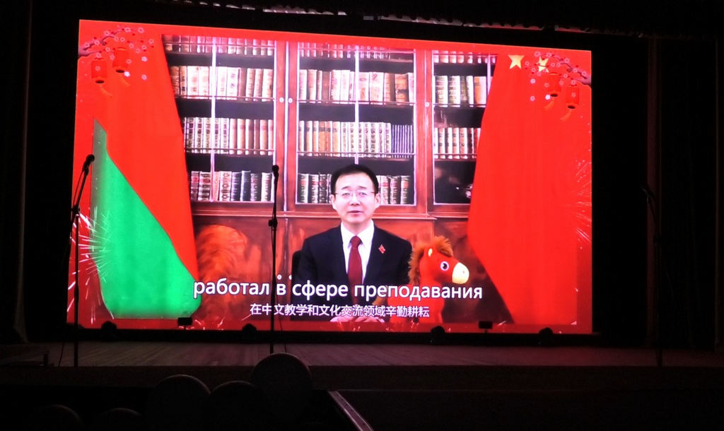 Вечер открылся видеопоздравлениями Посла Китайской Народной Республики в Республике Беларусь Чжана Вэньчуаня, ректора ГГУ имени Ф. Скорины Сергея Анатольевича Хахомова, а также слушателей курсов китайского языка Института Конфуция. С приветственным словом к участникам обратился содиректор Института Конфуция с белорусской стороны Александр Владимирович Рогачев.