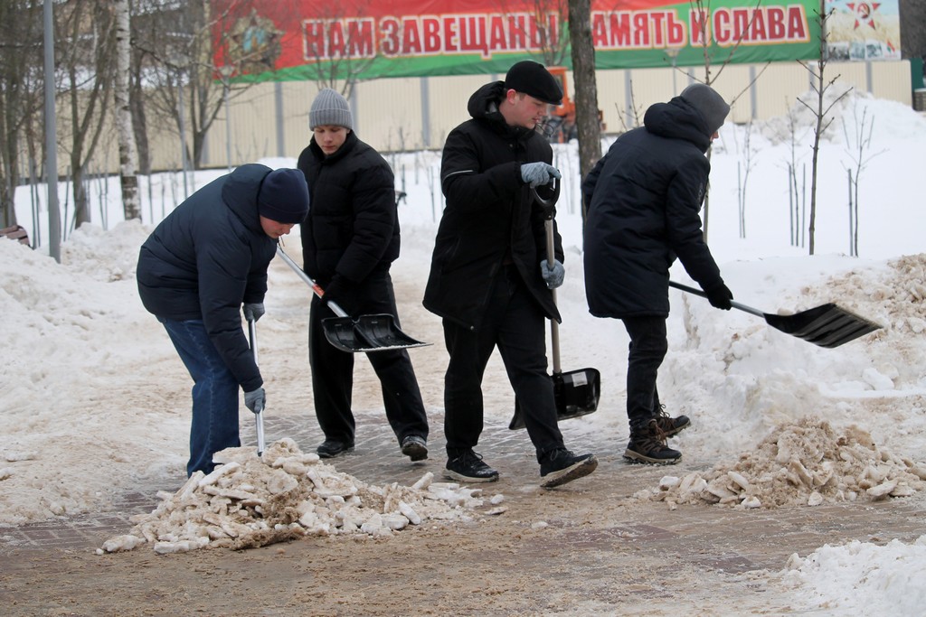 Продолжается декадник по уборке снега. Студенты ГГУ активно устраняют последствия снегопада не только на территории университета, но и за его пределами. Ребята помогли расчистить пешеходные зоны и общественные пространства города.