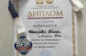 Юлия Шатрович (ФК-12) заняла 2 место в борьбе на левую руку и 3 место в борьбе на правую, заняв итоговое 2 место по сумме двух рук среди женщин (весовая категория 55 кг).