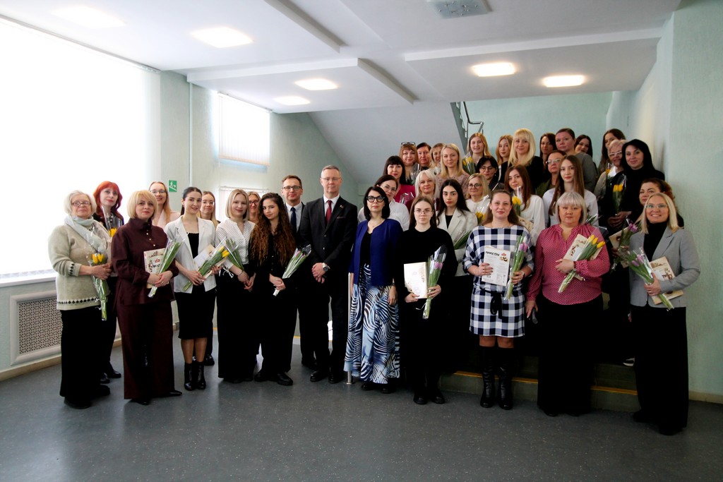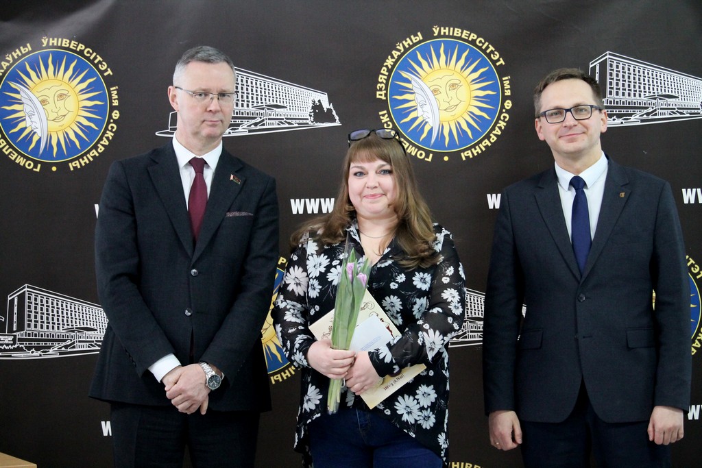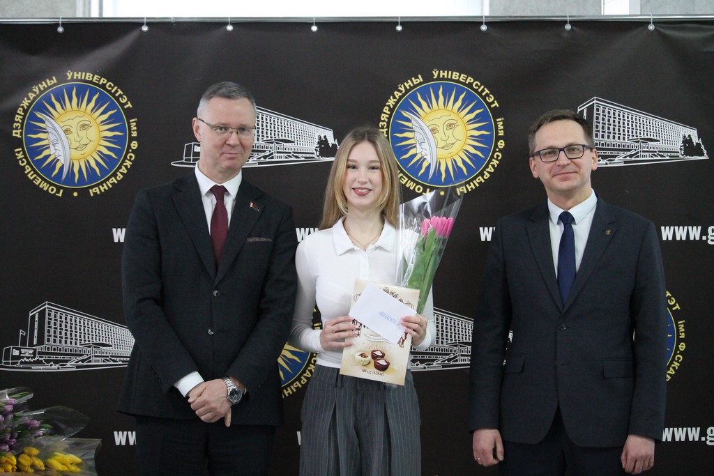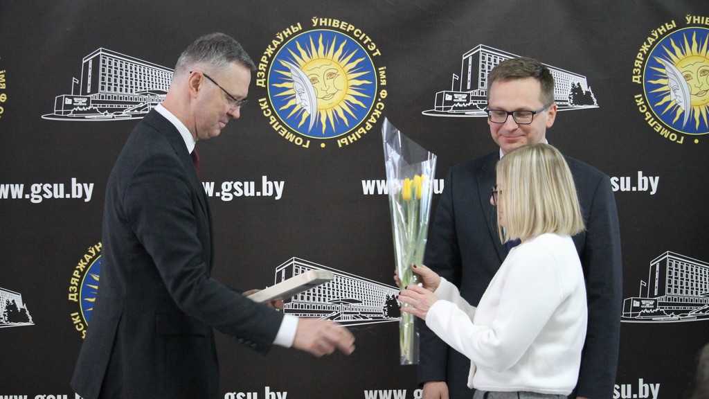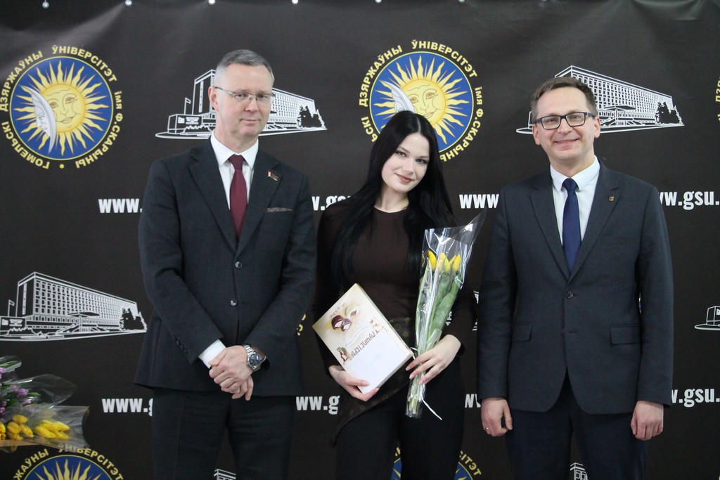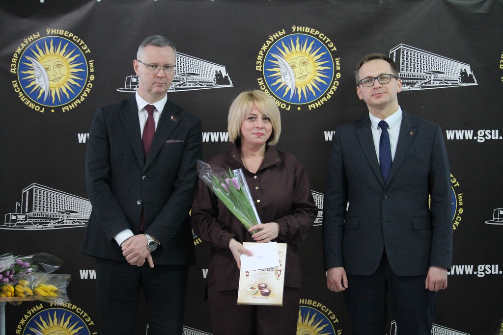 Накануне самого светлого и по-настоящему весеннего праздника – Дня женщин – в Гомельском государственном университете имени Франциска Скорины царила особая атмосфера тепла, улыбок и искренних поздравлений. В этот день девушки и женщины университета принимали слова признательности и добрые пожелания. Руководство и профсоюзный комитет выразили им благодарность за ту атмосферу уюта, радушия и гармонии, которую они ежедневно создают в стенах родного вуза, наполняя его жизнью, вдохновением и душевным теплом.