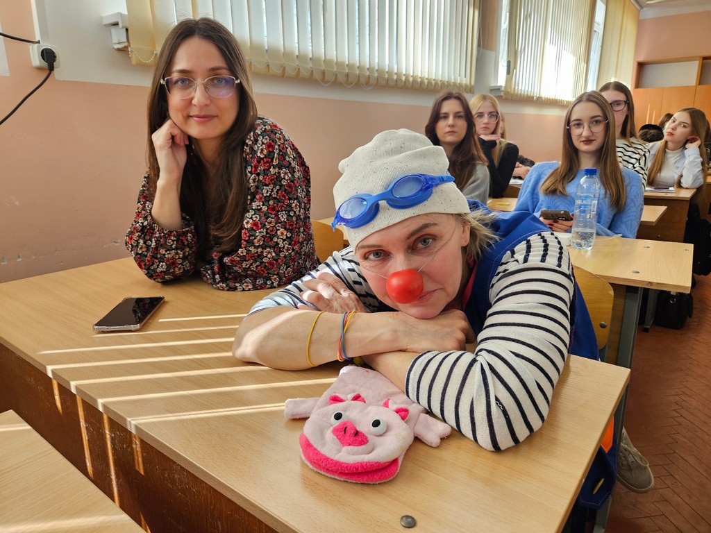 В рамках реализации проекта «Психологическая мастерская» СНИЛ «Альянс» состоялась необычная интерактивная встреча. Студенты-психологи получили уникальную возможность пообщаться с руководителем и участниками группы Гомельского городского молодежного благотворительного общественного объединения больничных клоунов «Funny Nose».