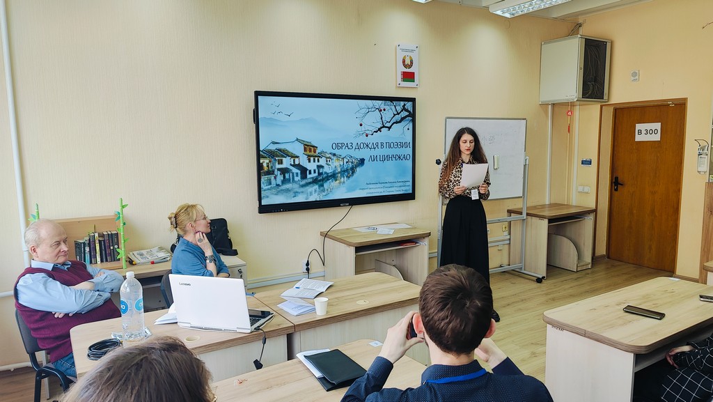 На круглом столе «Лингвистические и методологические аспекты преподавания китайского языка: от теории к практике» доклад на тему «Образ дождя в поэзии Ли Цинчжао» представила старший преподаватель кафедры русского, общего и славянского языкознания Ангелина Аксёнчикова-Бирюкова.