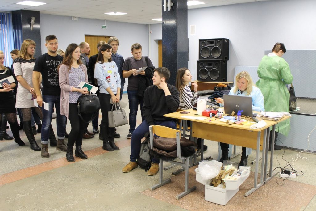 С самого утра в фойе актового зала корпуса №1, где разместилась  передвижная лаборатория Гомельской станции переливания крови, собрались будущие доноры. Кто-то пришел в одиночку, а кто-то привел с собой друзей. Многие из добровольцев участвовали в акции не в первый раз.