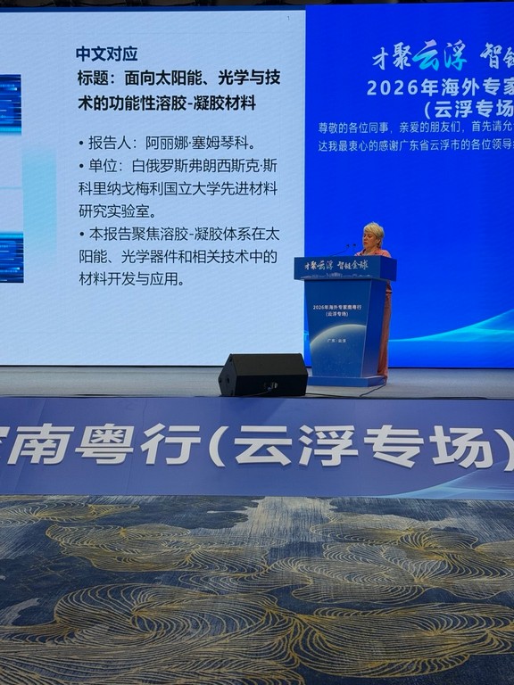 По приглашению Муниципального управления науки и технологий города Юньфу (провинция Гуандун, КНР) профессор кафедры радиофизики и электроники Алина Семченко представила результаты разработок золь-гель материалов на мероприятии по технологическому обмену и сотрудничеству «Визит зарубежных экспертов в Юньфу» для поиска китайских партнеров для дальнейшего научно-технического сотрудничества с ГГУ, а также на предприятиях VIIYONG и SUMDA.