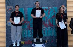 Алина Войтенкова заняла два первых места: 1 место в борьбе на левую и 1 место в борьбе на правую руку (весовая категория 63 кг).