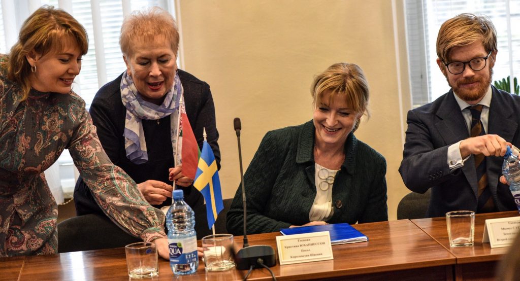 Чрезвычайный и Полномочный Посол Швеции в Беларуси Кристина Юханнессон в рамках ознакомительного визита в Гомельскую область посетила ГГУ имени Ф. Скорины. На встрече представителей Посольства с ректором Сергеем Хахомовым речь шла о расширении сотрудничества между нашим университетом и шведскими вузами.