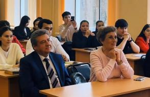 Согласно программе пребывания в первый день состоялась встреча С.А. Улитина с руководством университета. В течение часа шло обсуждение новых форм сотрудничества, вопроса об открытии на филологическом факультете брендированной аудитории, деталей передачи методической литературы.