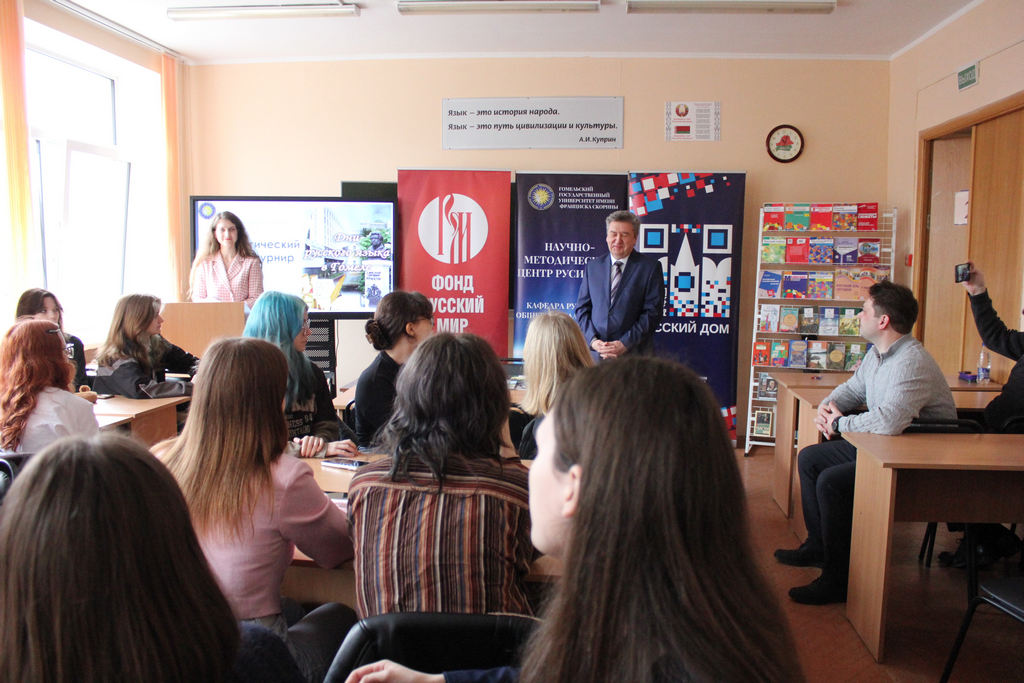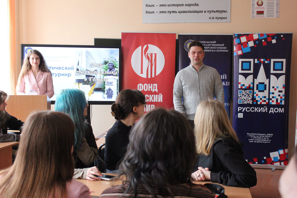 С приветственным словом выступили Улитин Сергей Александрович, главный проектный менеджер Управления русских центров и организации мероприятий фонда "Русский мир", и Моржухин Александр Валерьевич, руководитель Русского дома в Гомеле.