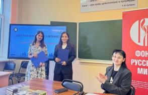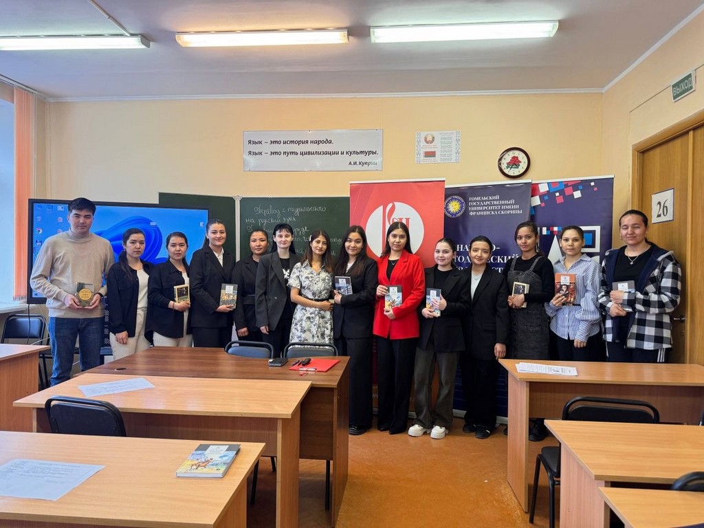 На филологическом факультете продолжается цикл мероприятий, приуроченных к Дням русского языка. 15 апреля под руководством преподавателей кафедры русского, общего и славянского языкознания А. В. Лобанович и О. В. Славиной состоялся Круглый стол «Языковое богатство русской и мировой культуры», на котором иностранные студенты филологического факультета представили научные доклады. Почётным гостем мероприятия стал Сергей Александрович Улитин – главный проектный менеджер Управления русских центров и организации мероприятий Фонда «Русский мир». С приветственным словом к участникам обратилась заведующий кафедрой русского, общего и славянского языкознания Елена Владимировна Ничипорчик.
