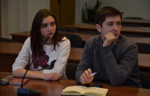 Перед членами Студенческого совета университета выступили студентки биологического факультета и факультета физики и информационных технологий Синкевич Дарья и Мушинская Татьяна, которые представили на фестивале наш университет. Гостем встречи стал председатель координационного совета первичных организаций Гомельского отделения Белорусской железной дороги Григорьев Максим, который тоже вошел в состав делегации Гомельской области.