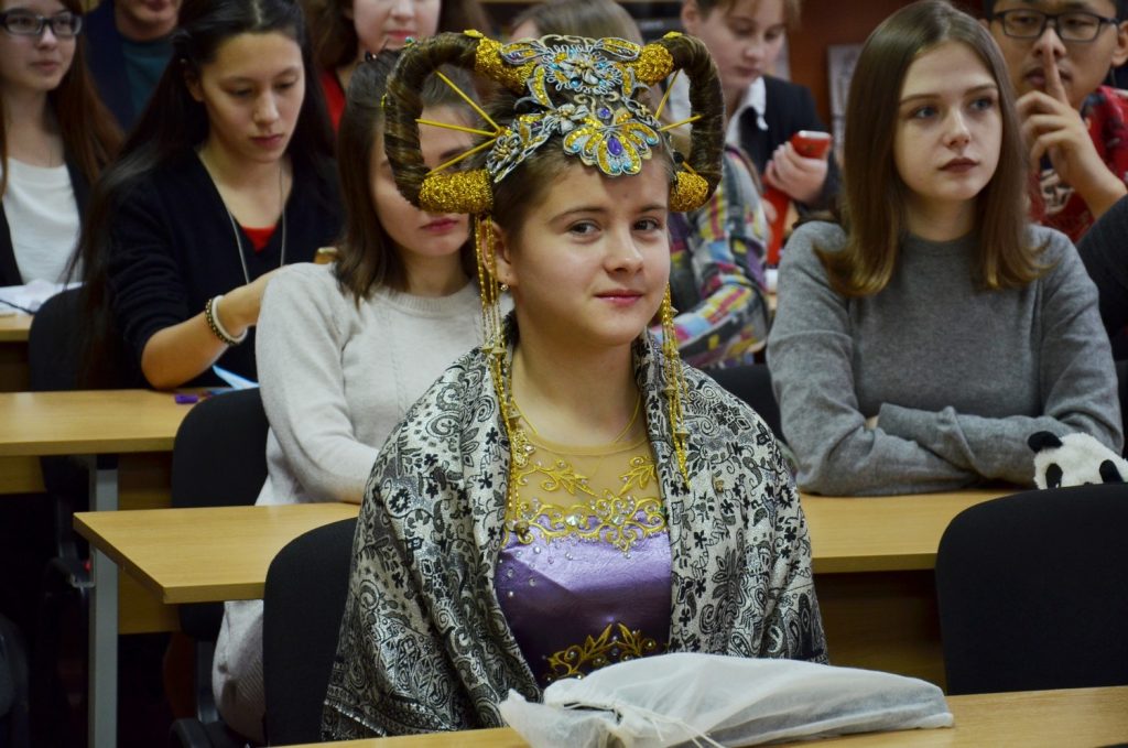 Галина Григорьевна Нечаева читала свои стихи, посвящённые Китаю, из недавно выпущенного сборника «Китайские мотивы». В аудитории звучали замечательные песни, стихи, диалоги на китайском и русском языках. Всех присутствующих впечатлил исполненный школьницей оригинальный танец с веерами.