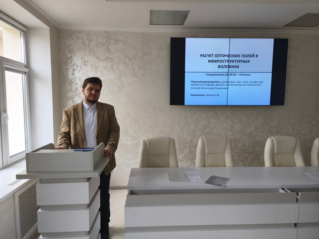 - Шилова Артура Владимировича – старшего преподавателя, кафедры физики и компьютерных технологий МГУ имени А.А. Кулешова на тему «Расчёт оптических полей в микроструктурных волокнах» по специальности 01.04.05 – оптика (научный руководитель – Сотский Александр Борисович, доктор физико-математических наук, профессор, профессор кафедры физики и компьютерных технологий УО «Могилёвский государственный университет имени А. А. Кулешова»).