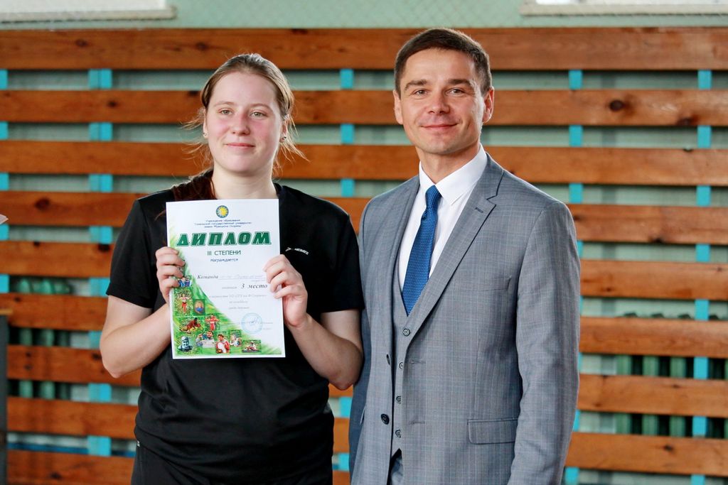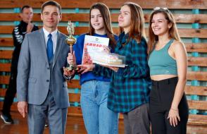由于紧张的斗争,数学和编程技术学院的代表(D.D. Zakharchenko,负责该学院的群众体育工作)庆祝了胜利。