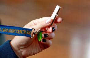 离讲台一步之遥的是外语学院的团队(负责大众体育工作 - L.M. Yarchak)。
