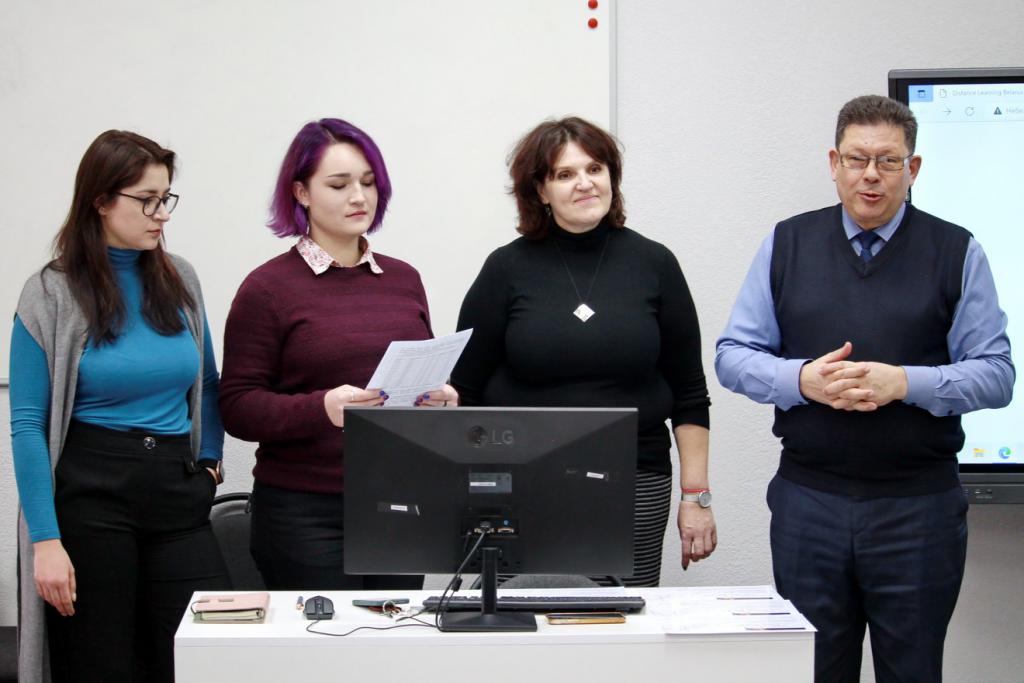白俄罗斯国立交通大学数学与编程技术学院院长 Sergey Zhogal、基础与应用数学系主任 Larisa Marchenko、会计系统与商业管理技术系主任 Sergey Shatrov 向区域参与者致辞祝贺学生奥林匹克“数学和编程技术”,Techartgroup LLC 系主任 Aleksey Lud,StillSoft Development LLC 负责人助理 Ekaterina Sakun,Asist-Lab LLC 软件工程师 Andrey Goncharov 和 Dmitry Marchenko。
