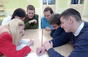 大学代表与学童的会面以关于以 Francysk Skorina 命名的戈梅利国立大学、法学院和大学入学新规定的故事开始。 随后,小伙子们尝试了法律基础知识问答、解谜和商业游戏“猜单词”,以促进团队的协调工作。