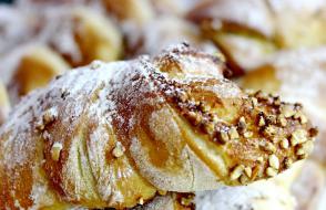 果酱和白干酪面包、酥饼、苹果馅脆条、酸奶油、杏仁糖、糖粉罂粟籽、泡芙舌头和奶酪信封、芝麻脆皮面包等等,您可以在所有餐饮中以合理的价格购买机构大学。