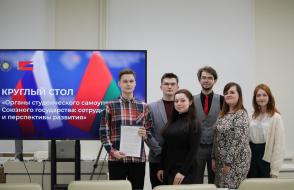 在圆桌会议上,GSU学生会主席Sergey Sakovsky向他的同事介绍了与以I. G. Petrovsky命名的BSU学生和研究生委员会主席以及斯摩棱斯克国立大学学生会主席达成的协议。