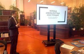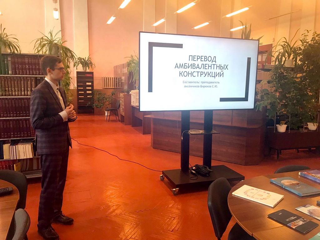 在活动的第二部分,系里的老师们举办了学科微课:《交际语法》——高级讲师Yuliya Akulich; “翻译基础”- Svyatoslav Aksenchikov-Biryukov 老师; “口头和书面演讲的练习”- Victoria Averyanova 副教授。